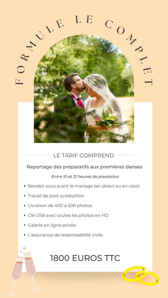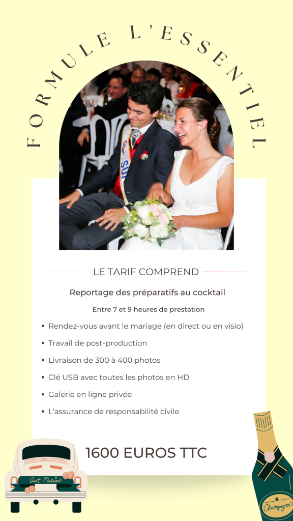 Selon le lieu de votre mariage, des frais de déplacement et éventuellement d’hébergement peuvent être à prévoir.